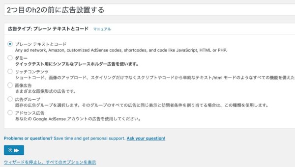 今回は例示でポストの最後(End of Post)とパラグラフ1の後(after Paragraph 1)で作ってみました。