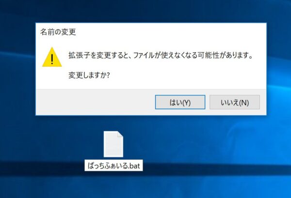 拡張子を変更していいか聞かれますので、「はい」をクリックします。