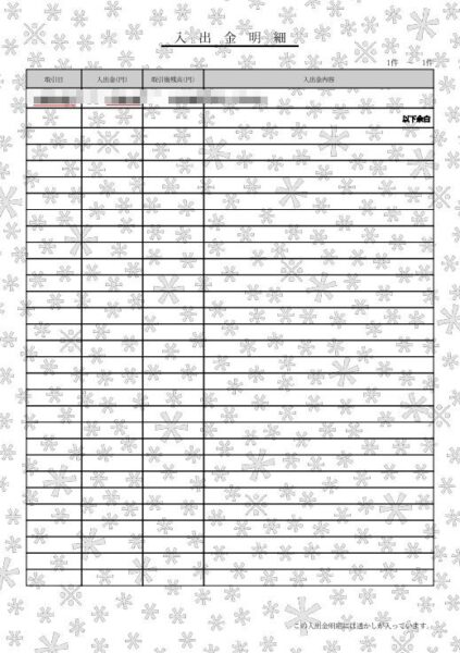 - 預金通帳の写しに代わるものとして,取引明細票,取引履歴照会票,払込金受取書,インターネットバンキング等の取引状況に関する画面をプリントしたもの(この場合には,当該書面に,払込先金融機関名,口座名義人名,振込日及び振込金額が記載されている必要あり)