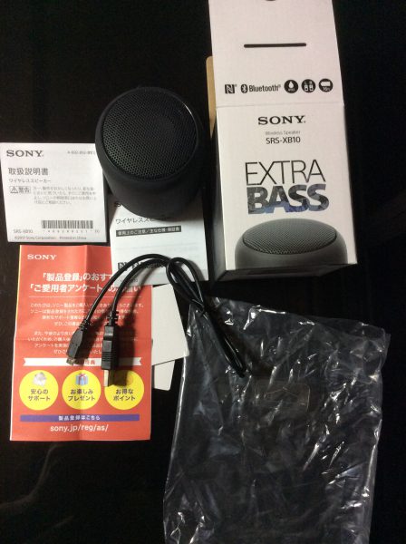 到着してすぐに箱を開けると本体と充電コード、簡単な説明書と保証書が付いていました。